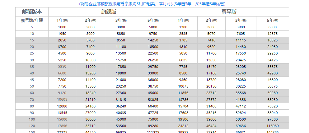 网易企业邮箱标准版和旗舰版选择,支持买2送2年,买3年送3年模式.