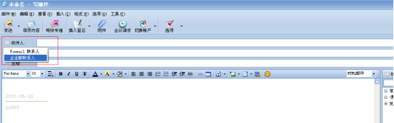 Step3:在foxmail中,进入到写信页面,点击“收件人”,选择“企业邮联系人”,此时会显示出企业通讯录架构,选择需要收信的联系人即可。