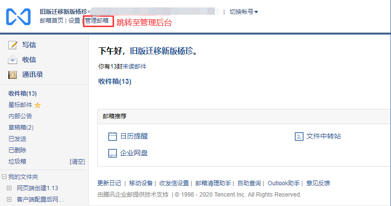 1.方便管理员登录后台,可从邮箱中一键进入管理后台,也可从管理后台跳转至邮箱。