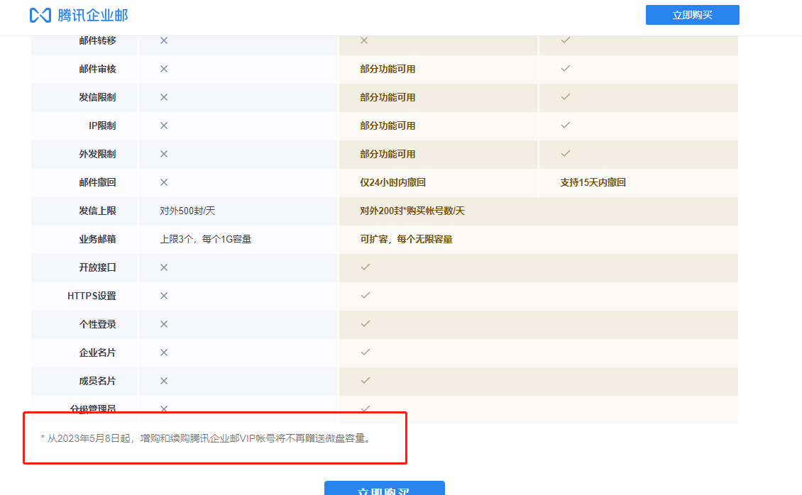 2. 从2023年5月8日起,通过在线直销增购/续期邮件*功能帐号,不再赠送微盘容量。