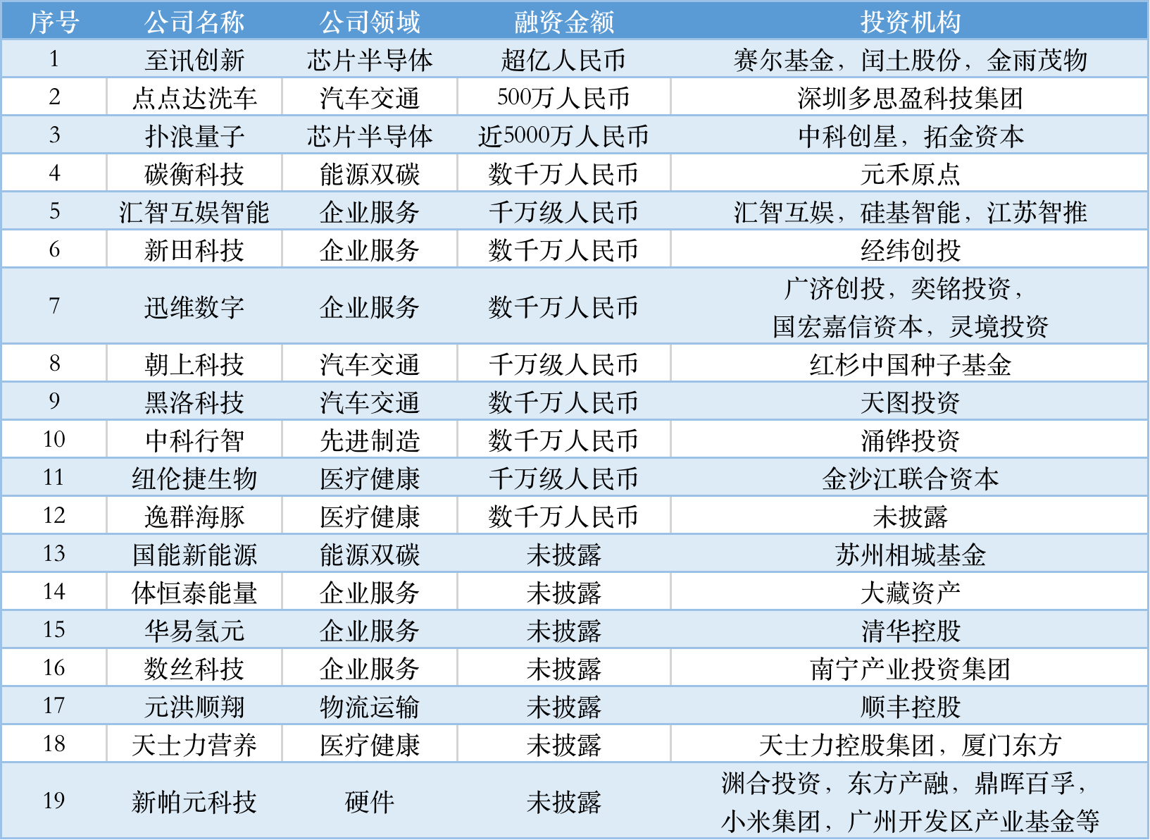 本周取患上天使轮融资的公司统计