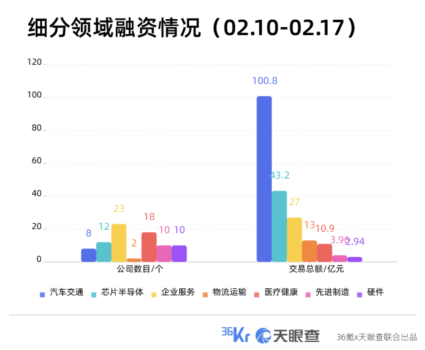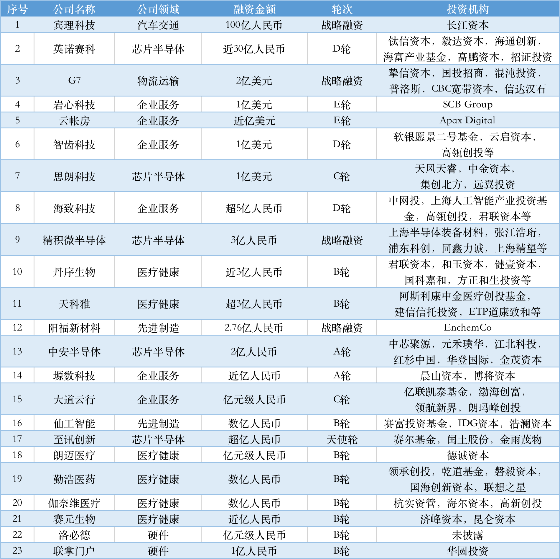 本周融资主要扩散在企业效率,医疗瘦弱以及芯片半导体规模;汽车交通规模吐露的生意总额金融规模至多,为100.8亿元。