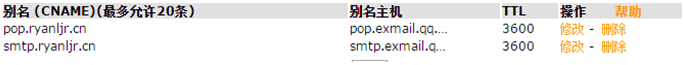 Cname值: smtp.域名 别名主机:smtp.exmail.qq.com(海外用户别名主机请设置为:hwsmtp.exmail.qq.com )
