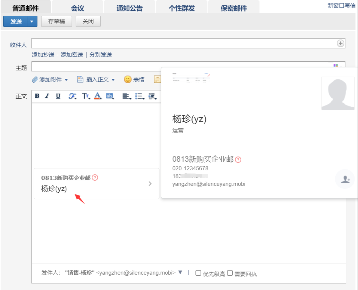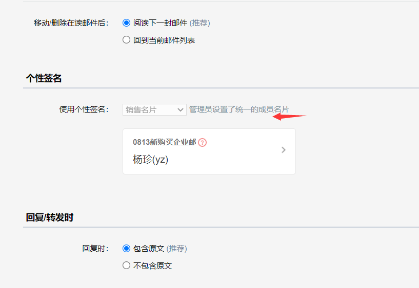 同时写信时也会默认使用管理员强制的名片。