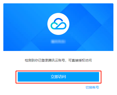 在授权账号确认页中,系统会根据拉取您的账号信息,若为您需激活的腾讯云账号,单击立即访问。如下图所示: