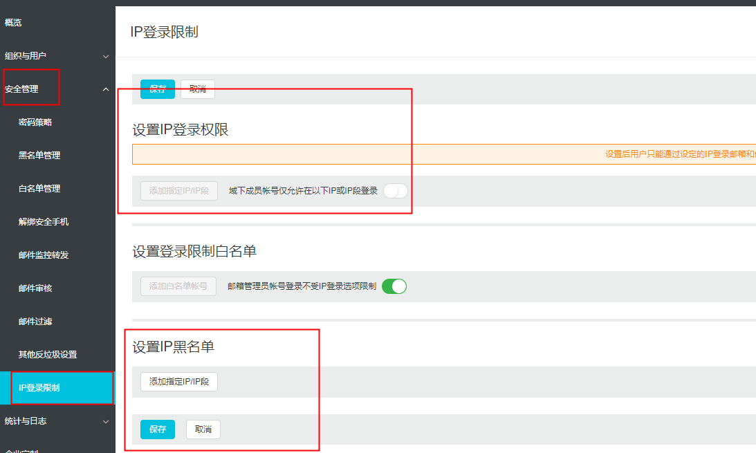 提示“ip在黑名单中”是指企业管理员在管理后台设置了“ip登录权限”,限制域下指定的帐号只能从设定的ip登录邮箱。当您登录邮箱的ip不在管理员设定的范围内,登录时便会有该提示。请联系管理员调整“ip登录权限”里的设置即可。