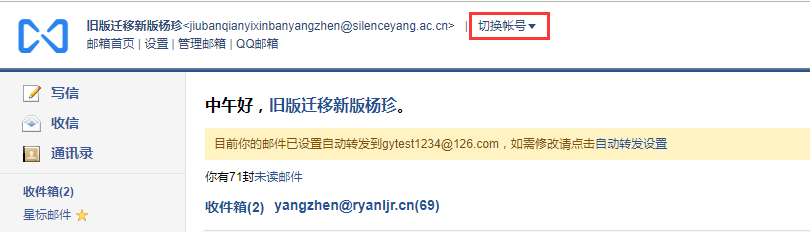 网页登陆邮箱后,邮箱首页右上角-切换账号。支持切换不同企业成员账号和业务邮箱。