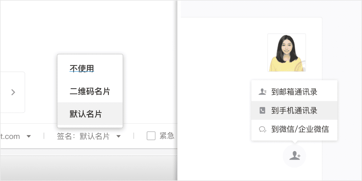 成员在发信时,可以使用「默认名片」作为邮件签名