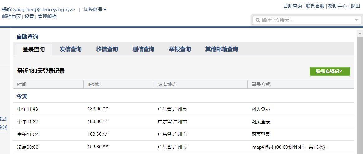 (1)登录查询:查看近期您邮箱的登录情况,包括登录时间,地点,登录方式等信息。
