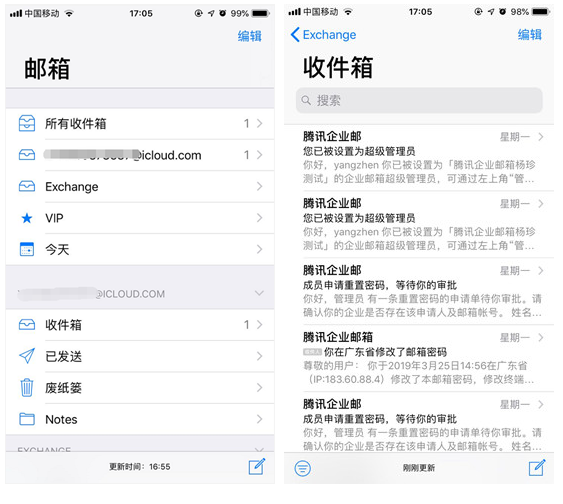 4.返回iPhone主页面,选择“Mail”-“Exchange”,进入邮箱可以正常收发邮件