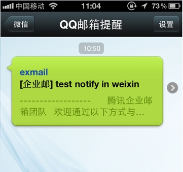 可通过微信提醒新邮件。如果你的企业邮箱帐号已经绑定了微信,新邮件将通过微信企业邮箱助手提醒你。