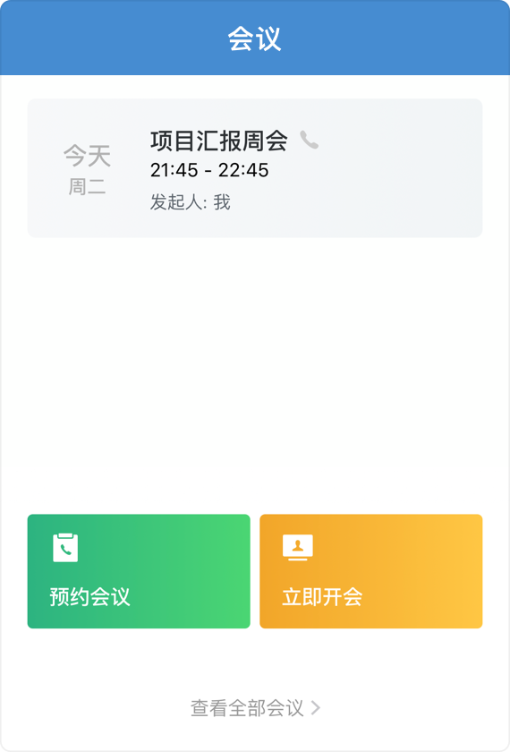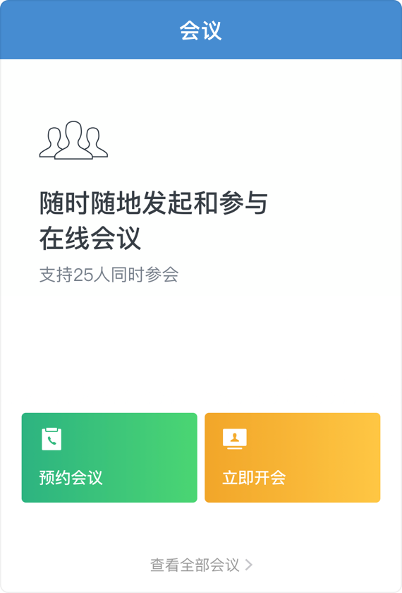 会议是一种高效的多人实时通讯协作方式,满足企业办公场景中的跨地域在线会议需求。