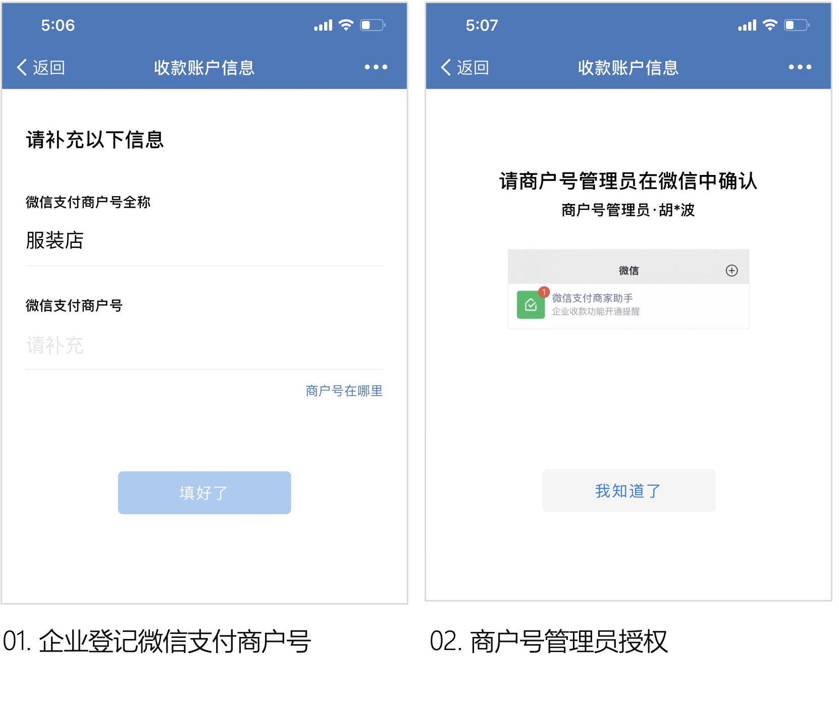 如何开通:开通对外收款功能时,需要登记微信支付商户号以及商户号的主体名称,可在手机端和管理后台开通。
