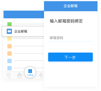在工作台进入企业邮箱应用,输入工作邮箱或常用邮箱帐号及密码完成绑定。