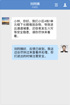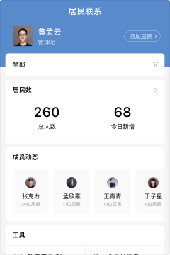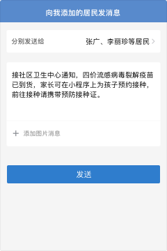 成员可添加居民的微信,主动了解居民近况、在线为居民解答问题、或发送重要通知等。