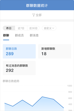政府可创建内部协同群,方便日常通知下发等,还可设置不同成员的建群人数上限、聊天水印、群禁言等,保障言论可控和安全。普通群支持2000人上限,全员群支持1万人。