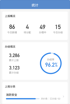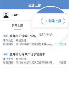 网格员可使用巡查上报,记录并汇报日常巡检情况;居民可以在居民群内@居民助理,便捷地反馈自己遇到的问题和建议;网格中心负责人可以查看网格员和居民的上报详情,清晰了解待处理和处理中的问题,提高网格化管理效率。
