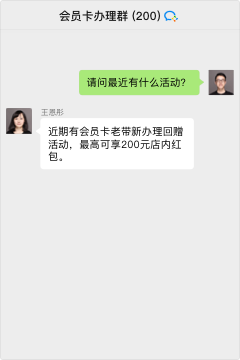 可为客户群配置入群欢迎语,当新成员入群时,即可收到自动发送的欢迎消息