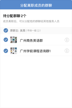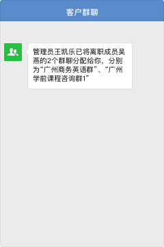 成员离职并从通讯录中被删除后,可以分配他的客户群给其他成员