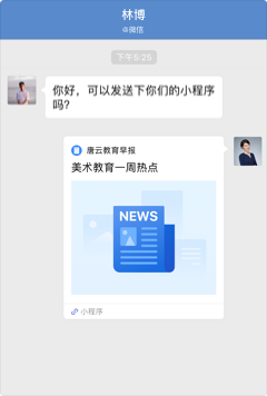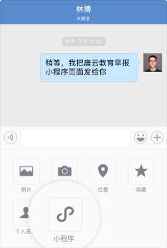 支持将小程序添加至聊天附件栏,成员可在聊天时更快捷地将小程序发送给微信用户
