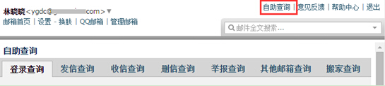如何进入自助查询? 登录QQ邮箱首页后,在右上角,点击“自助查询”进入。