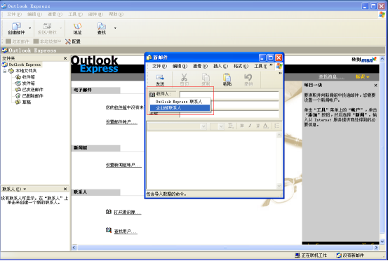 Step3:在outlook中,进入到写信页面,点击“收件人”,选择“企业邮联系人”,此时会显示出企业通讯录架构,选择需要收信的联系人即可。