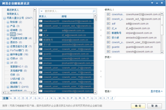 小窍门:如上图示意,选择收件人时支持一次性选择多个收件人,同时支持添加抄送和密送,在同个界面即可完成操作,使您的办公更加方便快捷。