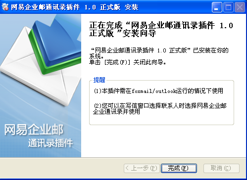 安装完成,系统提示该插件需要在非网易邮件客户端运行的情况下使用。
