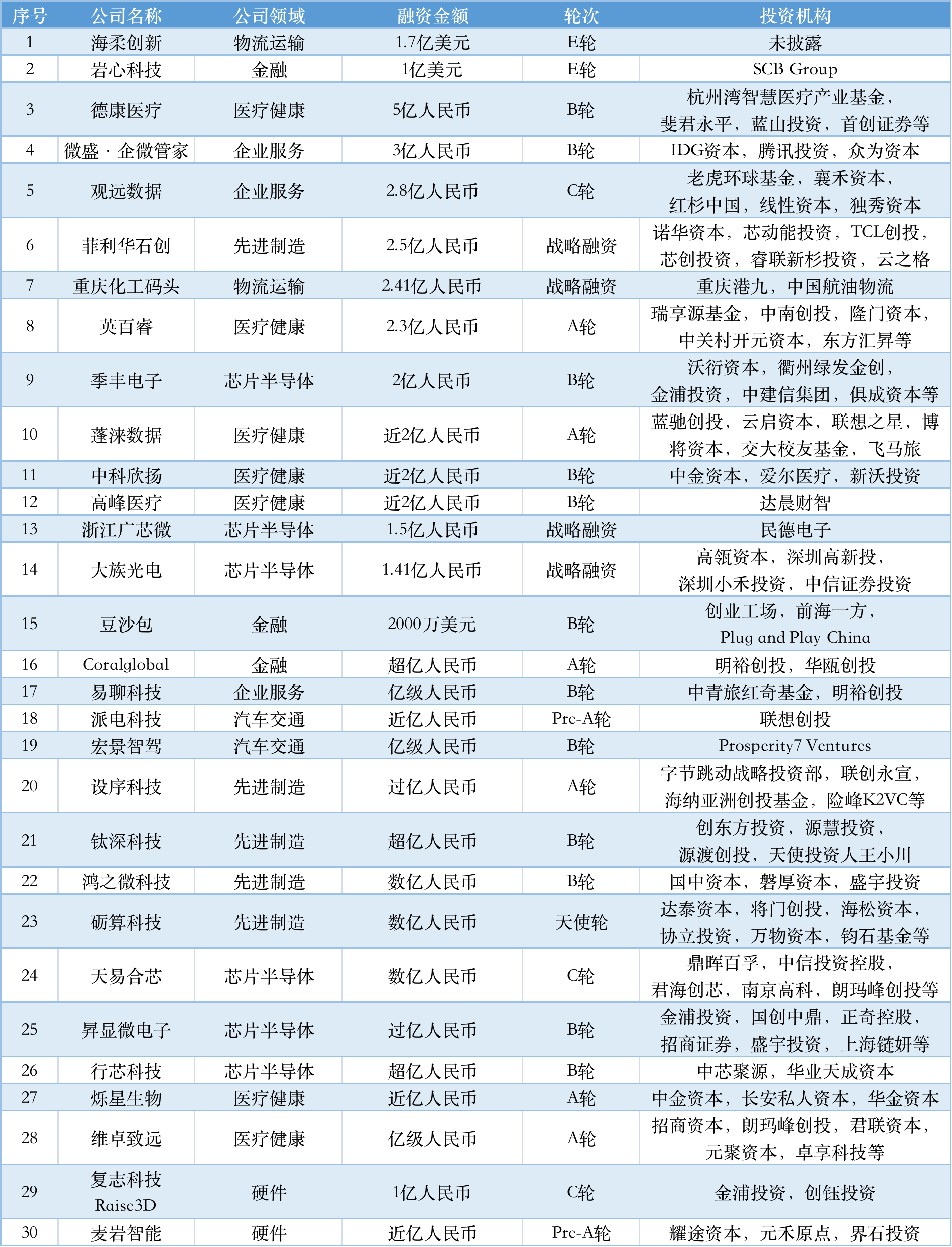 本周融资金额过亿的生意共有30笔,融资规模*大的一笔为海柔立异,单笔融资达1.7亿美元。