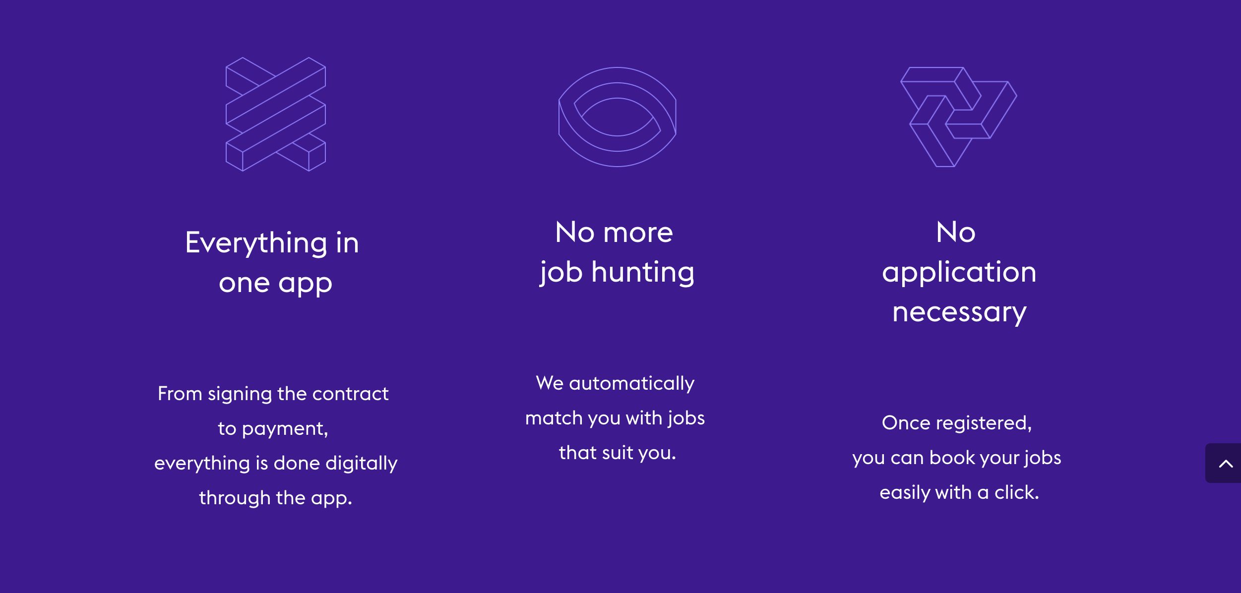以及其余一些“今世人力资源机构”同样,Zenjob直接雇佣临时工,负责相关的行政规画(如薪酬以及布景使命),以进一步简化他们的使命。该公司提供给临时工的另一个处分是应承在实现轮班后72小时内发放一半的人为,这可能会比传统机构汇款速率更快。