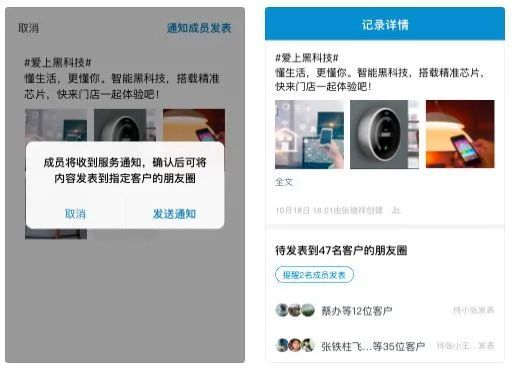 优势1 统一管理朋友圈发送的内容:企业可统一创建朋友圈,成员确认后、即可直接将内容发表到客户的微信朋友圈。