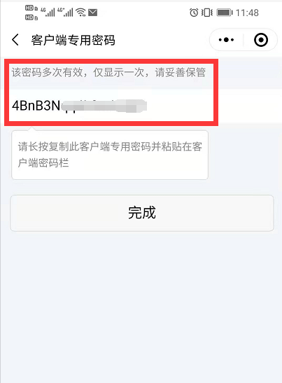 注意:每次生成的密码皆可使用,无需记住此密码,请勿告诉他人
