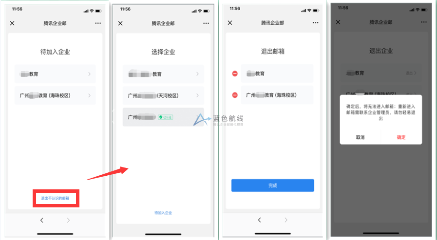 如不需要使用该邮箱,可通过以下方式退出企业:1.微信/企业微信扫码(部分用户也可以使用手机号)登录后,手机端页面(*下方)选择“待加入企业”-“退出不认识企业”。