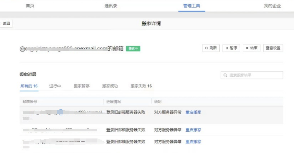 启动无感搬家后,管理端搬家详情提示“登录旧服务器失败,对方服务器异常”,请优先检查确认exchange委托模式是否设置成功。
